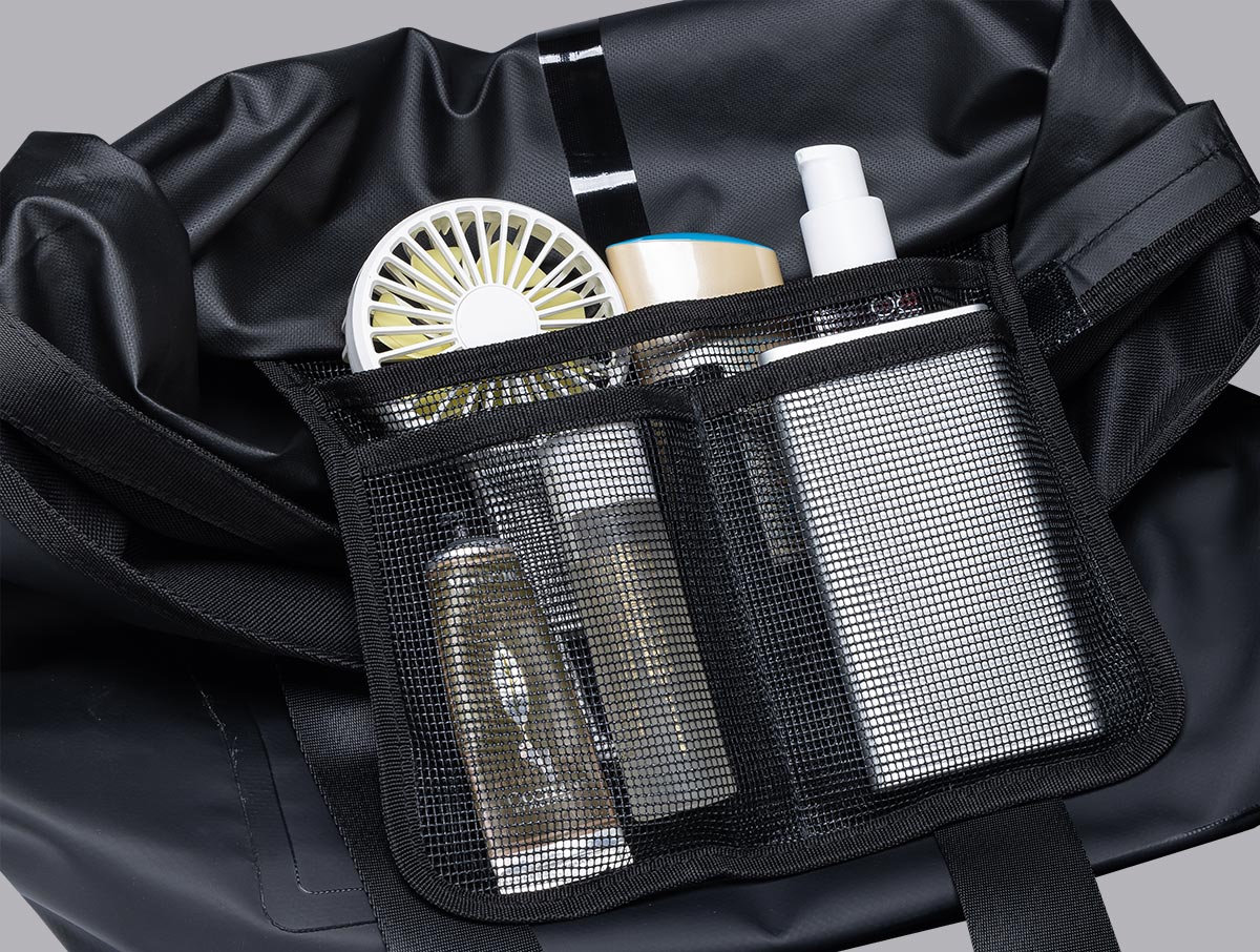 A breathable mesh compartment equipped inside the bag, providing storage space for small items and keeping them separate from damp items.