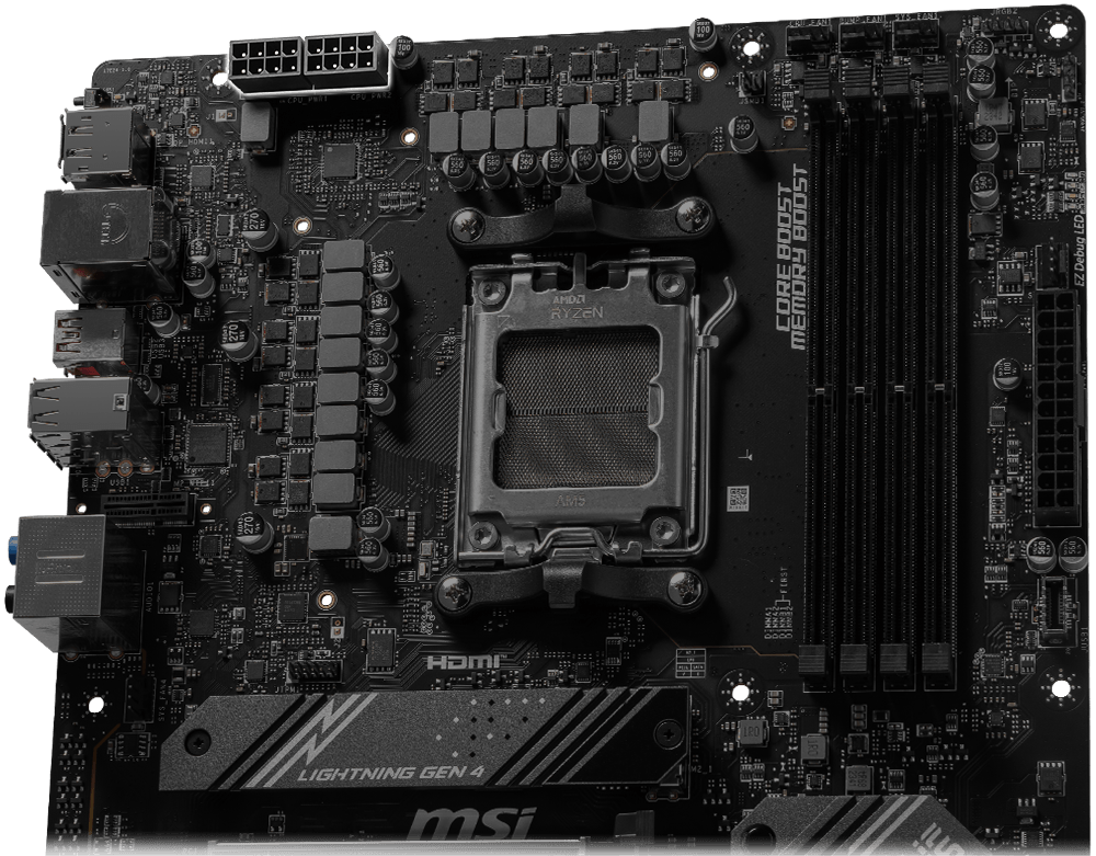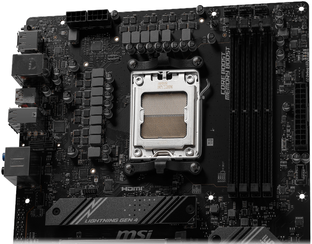 Unleash and sustain the maximum performance with a VRM design built with a total of 12+2+1 power design. Combining dual power connectors and exclusive Core Boost technology, MSI B650 GAMING PLUS is ready to sustain heavy daily work.