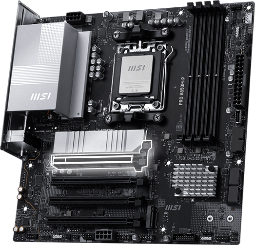 Unleash and sustain the maximum performance with a VRM design built with a total of 7+2+1 digital power phases. With an 8-pin power connector, PRO B850M-P is ready for the challenge of heavy-loading tasks.