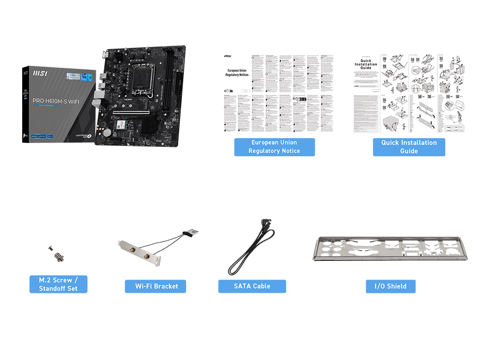 Wi-Fi 6EThe Wireless module is pre-installed in the M2_WIFI1 (Key-E)slot Supports MU-MIMO TX/RX, 2.4GHz/ 5GHz/ 6GHz*(160MHz) up to 2.4Gbps Supports 802.11 a/ b/ g/ n/ ac/ ax Supports Bluetooth® 5.3, FIPS, FISMA* The usage of Wi-Fi 6GHz band relies on Windows 11 support and depends on every country’s regulations. ** The Bluetooth version may be updated, please refer to the Wi-Fi chipset vendor’s website for details. |